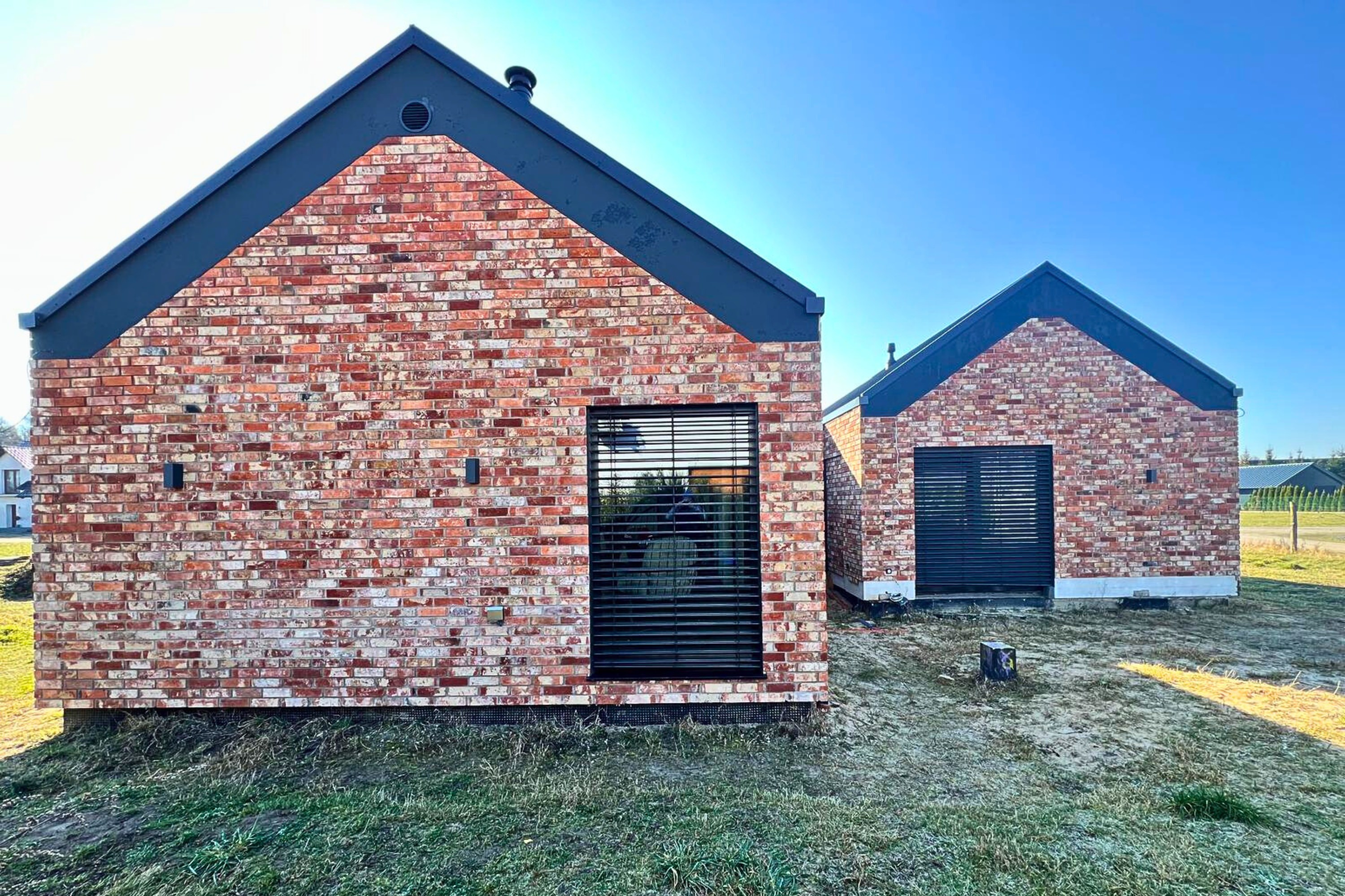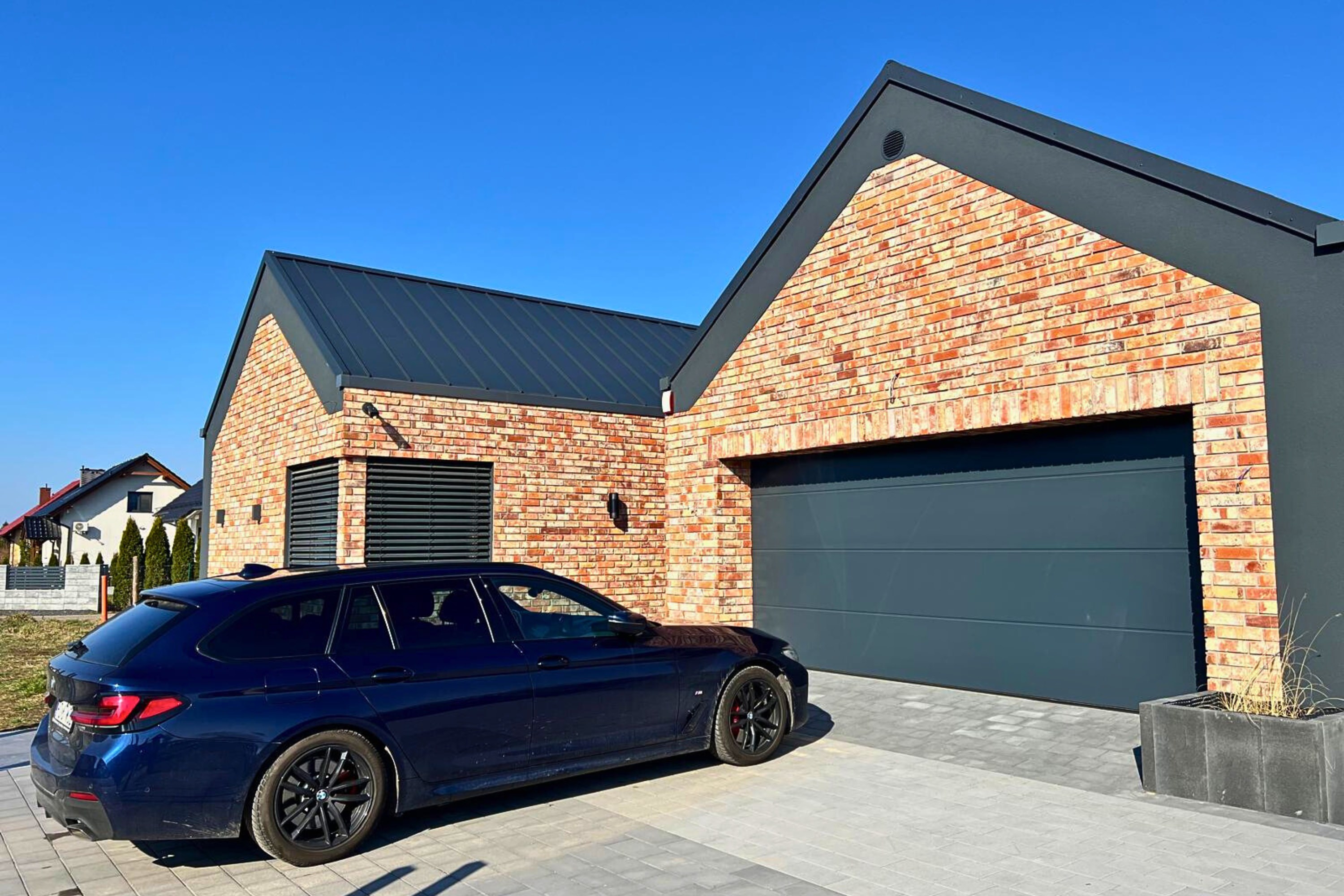 - Elewacja ceglana z grafitową stolarką
